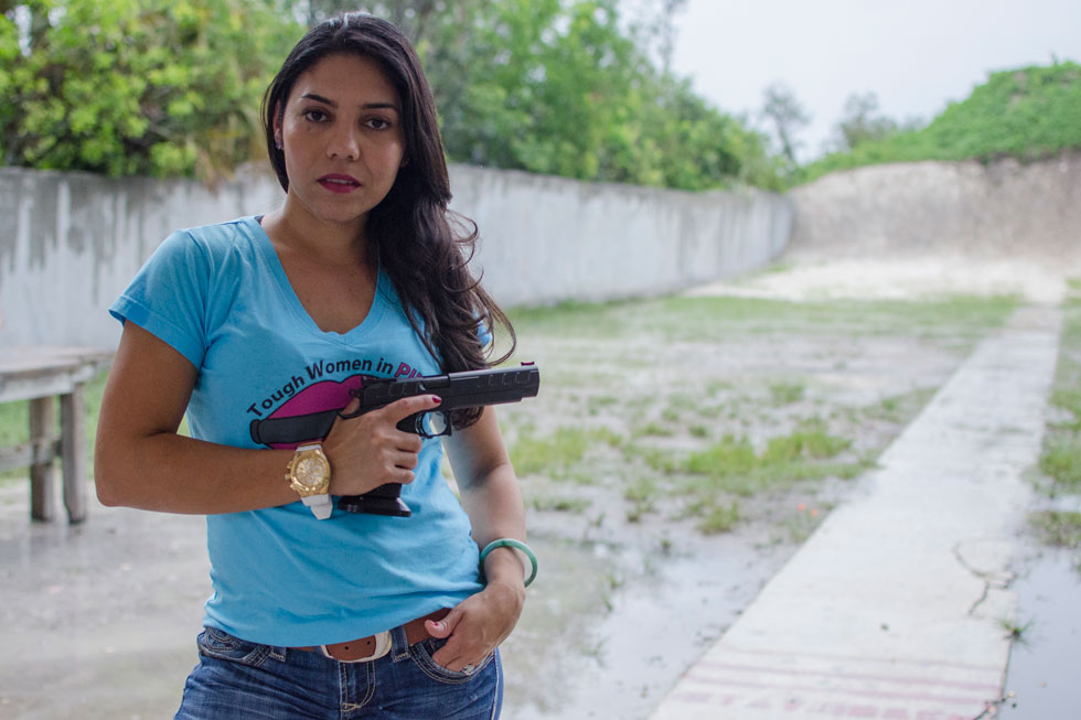PLAY A former Olympian from Venezuela, Gabby Franco was one of the first women to compete on History’s “Top Shot” reality show. Picking a favorite gun is like trying to pick a favorite shoe, she said. Photo by Natalie Krebs/News21.