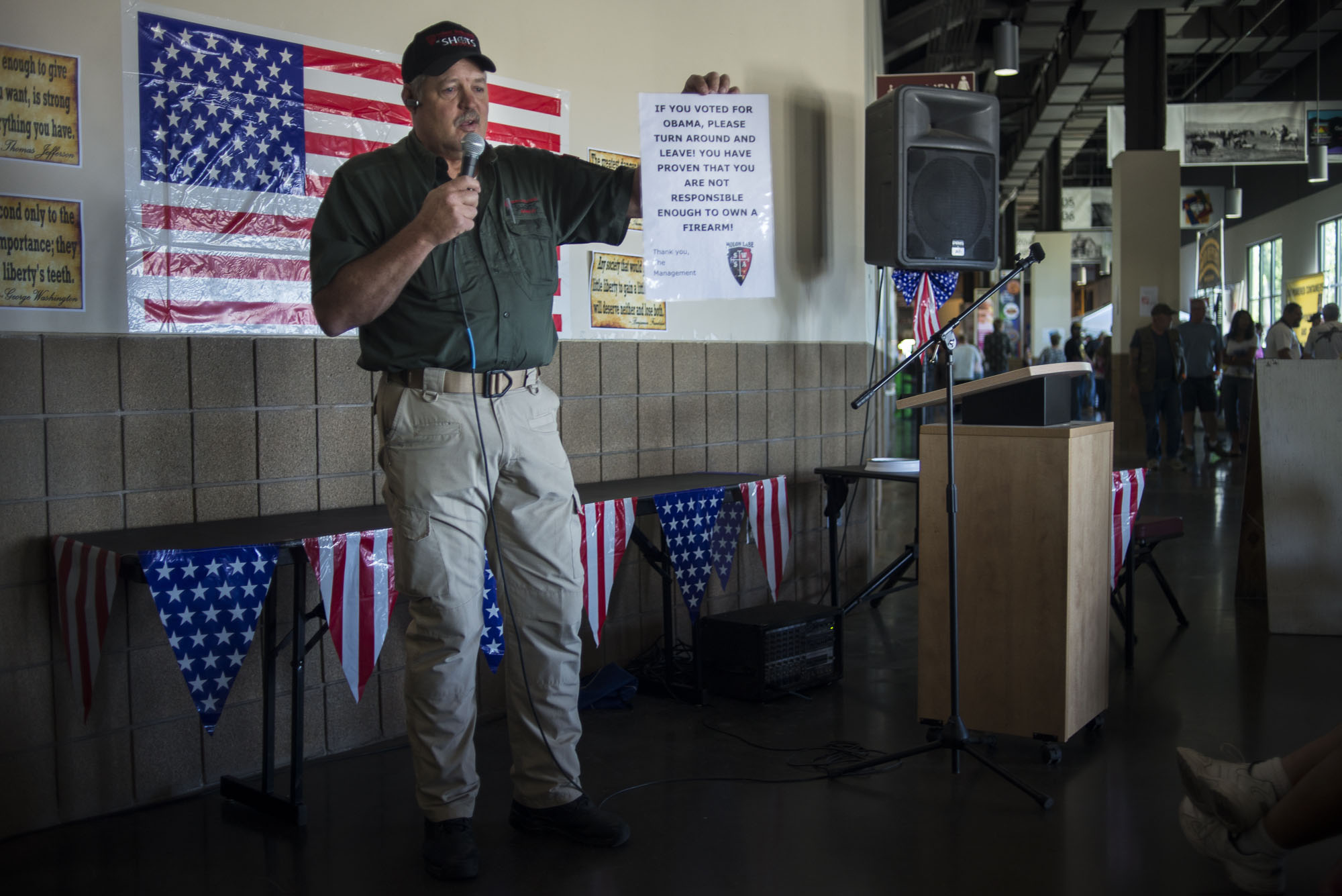 Guns and ammunition were not being offered for sale, but many of the vendors were offering gun accessories and several of the speakers focused on the Second Amendment and the importance of an armed populace.