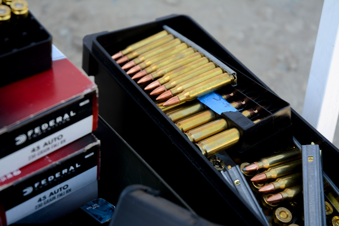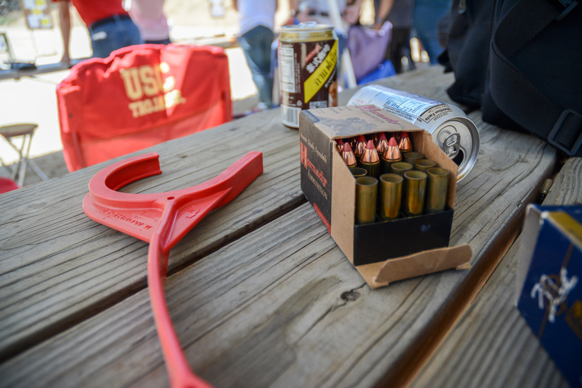 Boxes of ammunition are piled behind the shooting line. Instructors said they hoped to show people who had never held a gun before that using firearms could be a positive experience. Photo by Kristen Hwang/News21.