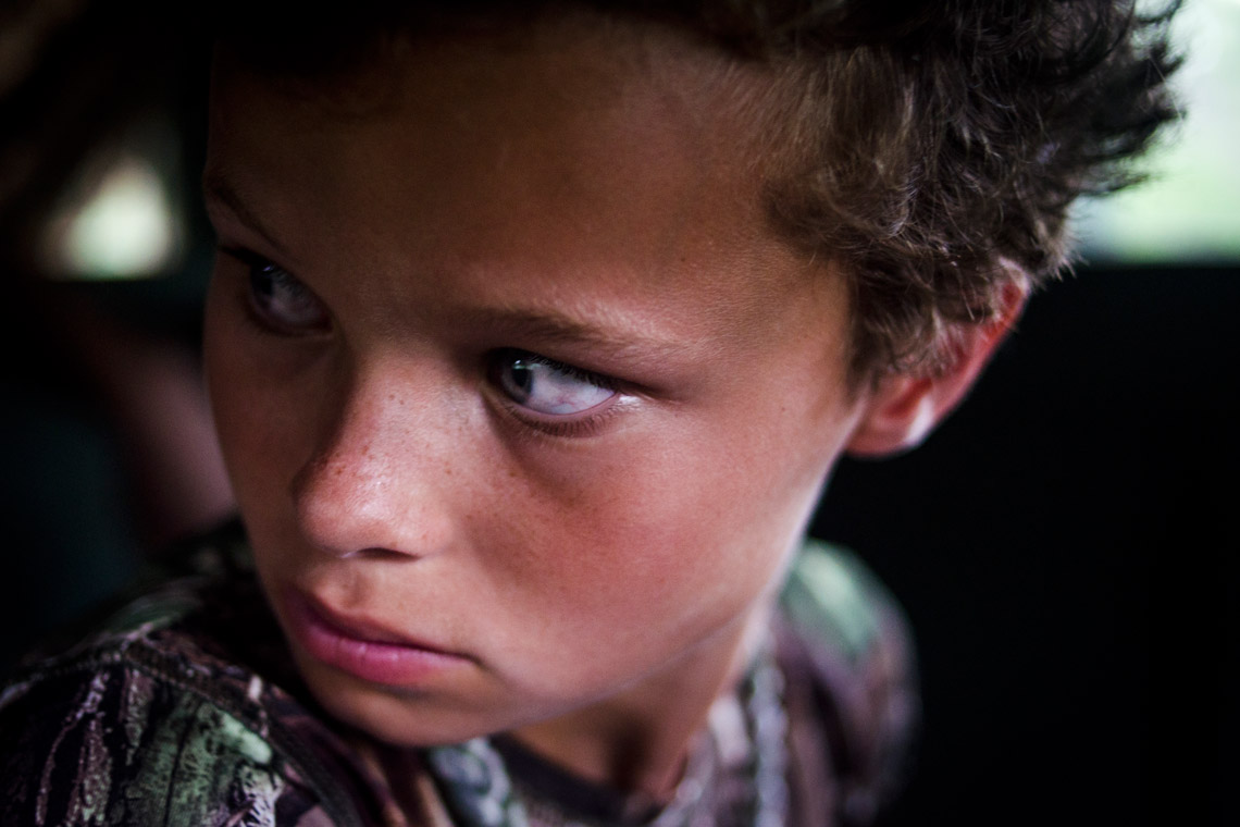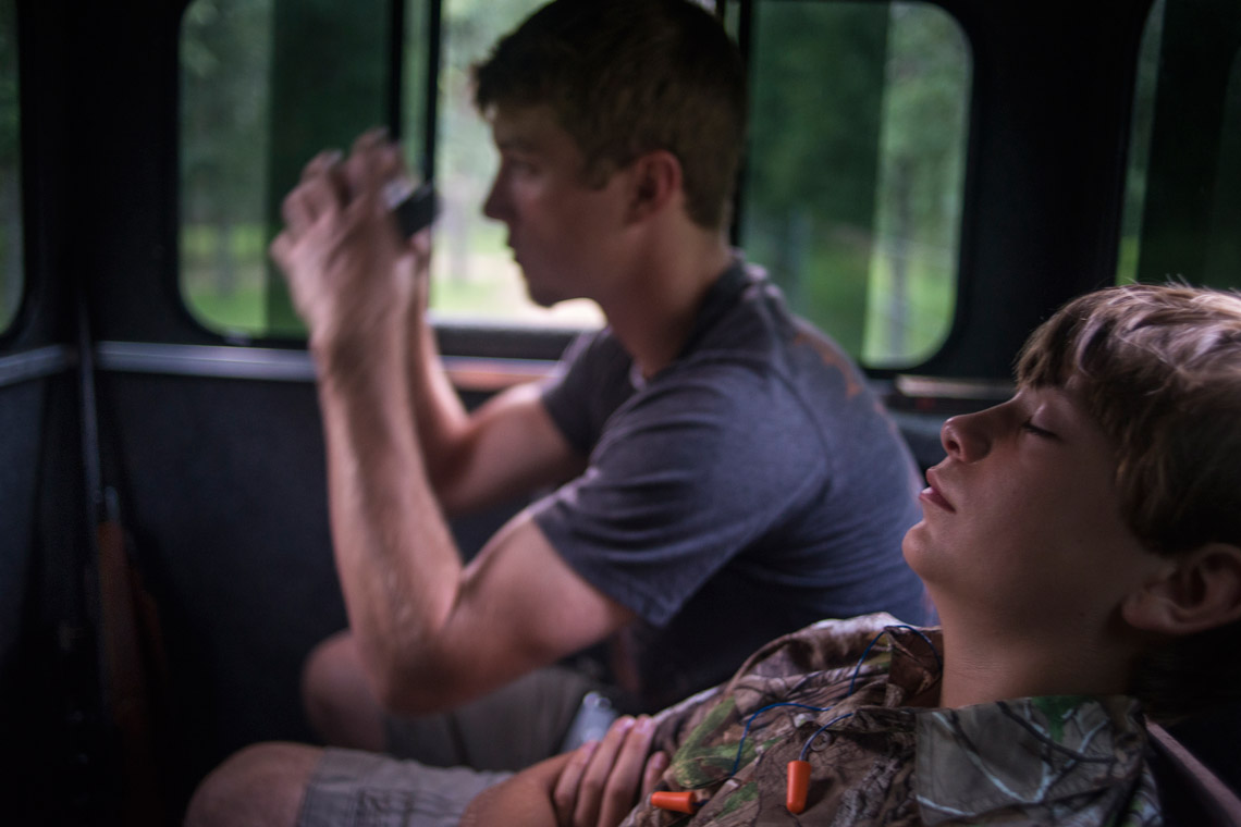 Canterbury rests his eyes as he and Hall wait for several hours in a hunting blind. The 13-year-old said that he has been hunting since he was 7 and that he first fired a gun when he was 5. Photo by Jim Tuttle/News21.