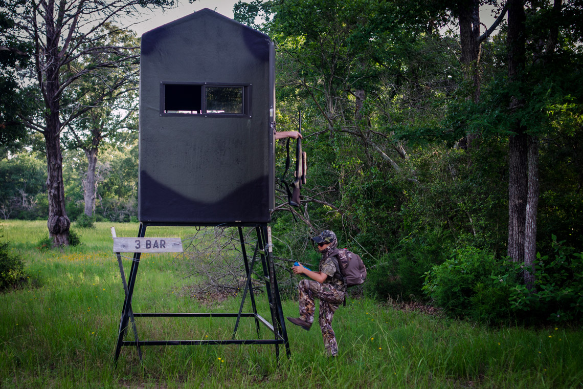 A hunter since age 8, 12-year-old Miguel Millan was one of 16 kids attending a weeklong Christian Outdoor Alliance camp in June at the Mobley Ranch near College Station, Texas. His days at the camp started early as he sat for hours in a hunting blind with a guide and camp counselor. Photo by Jim Tuttle/News21.