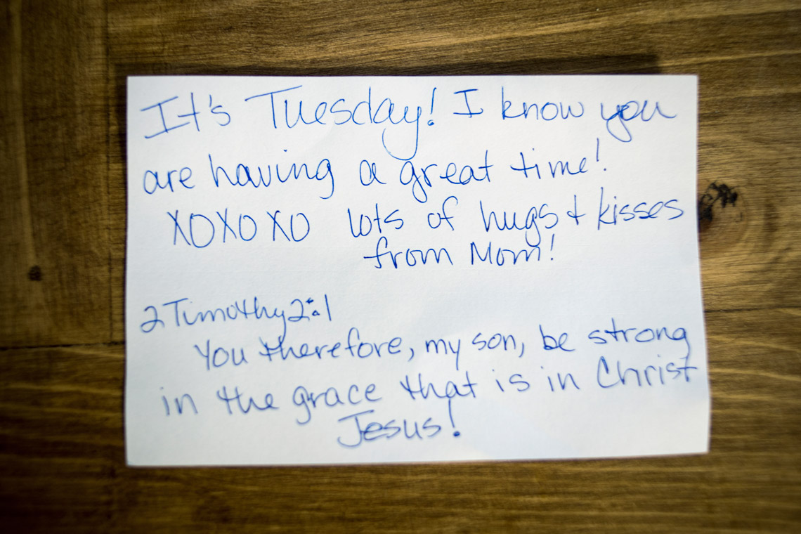 One of the campers received an encouraging note from his mother during “mail call.” Photo by Jim Tuttle/News21.