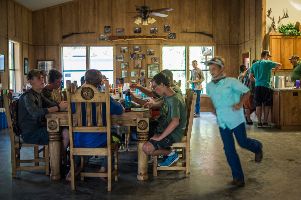 Campers and counselors share meals in the Mobley Ranch hunting lodge. Photo by Jim Tuttle/News21.