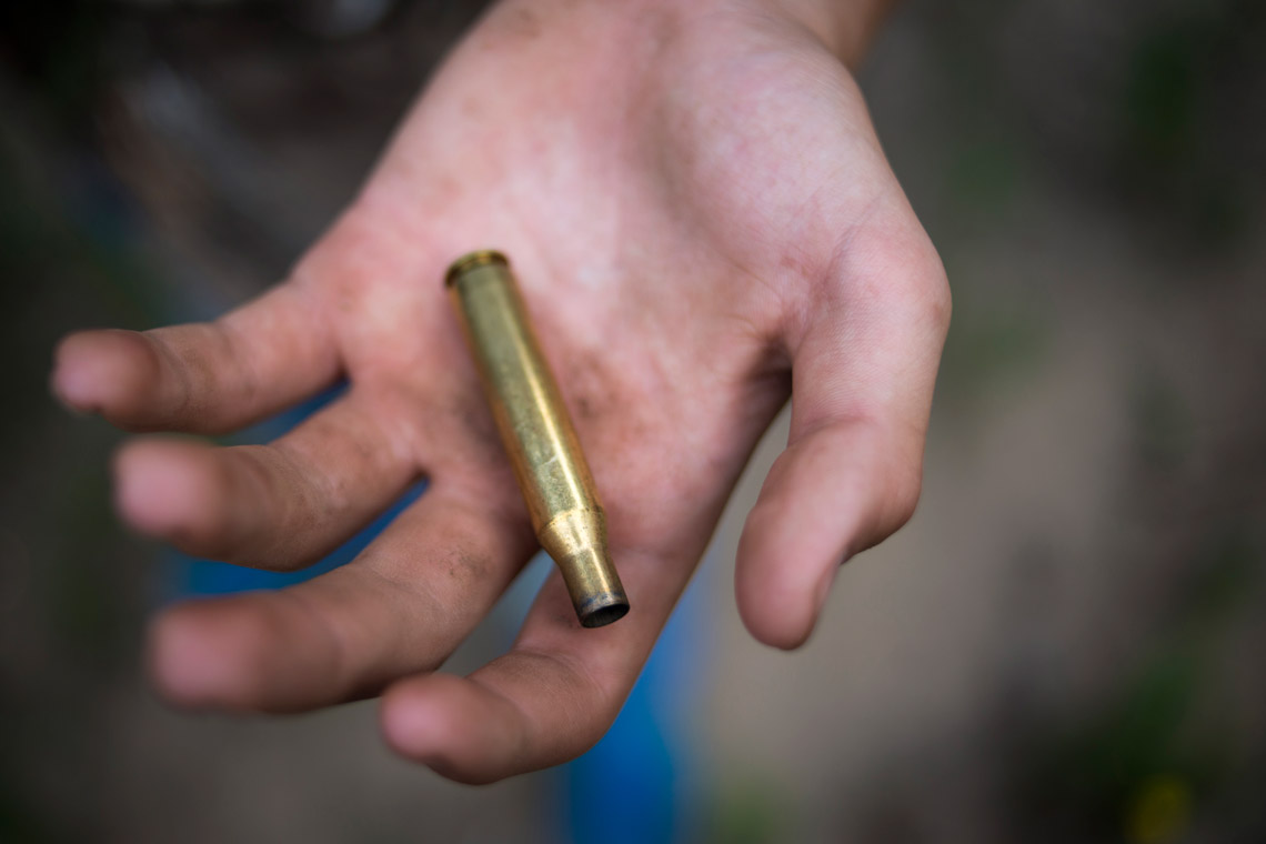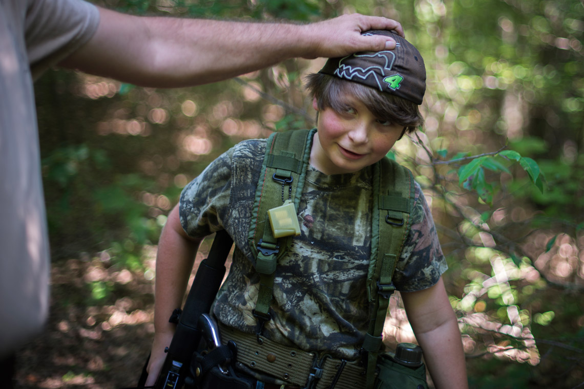 Davis, a fifth-grader, said he enjoys shooting and participating in drills whenever he can. But he hasn’t told all his friends at school that he’s in a militia. “They don't really understand it as much as grown-ups,” he said. “I was born around guns, but it's kind of hard to explain. So I tell my best friends, but that's about it.” Photo by Jim Tuttle/News21.