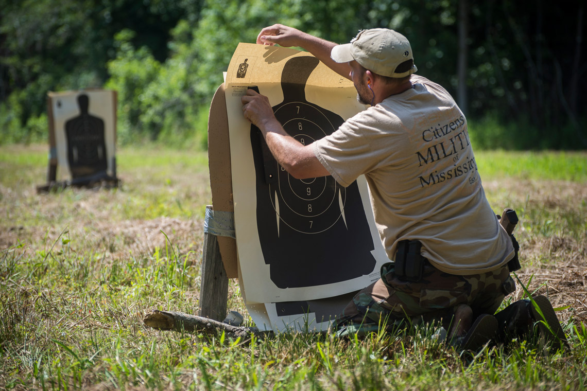 Northeast chapter member Shannon Muse sets up targets for practice on his property near Booneville, Miss. The Citizens Militia of Mississippi uses his rural property as a training facility. Photo by Jim Tuttle/News21.