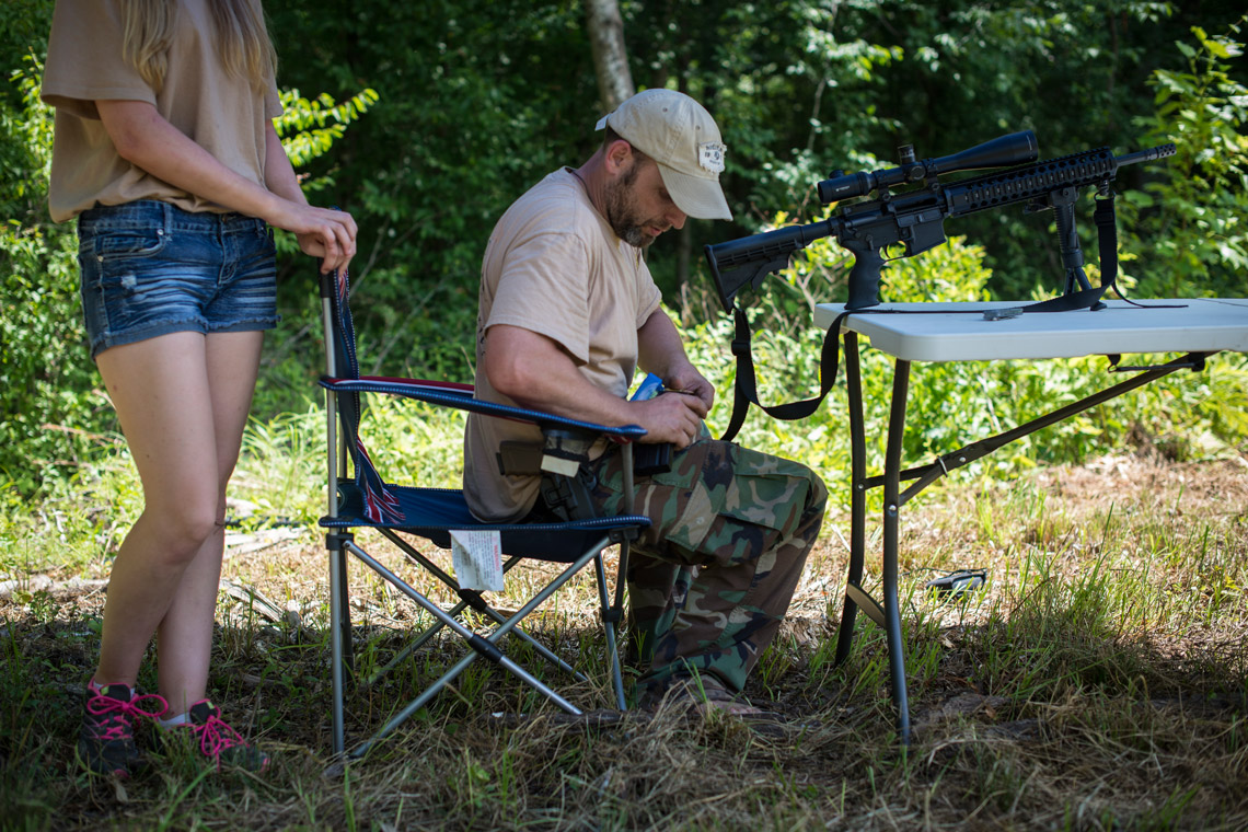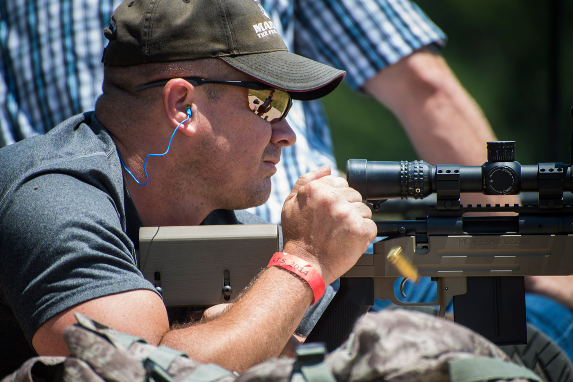 Matt Jones shoots during the sniper challenge at the 2014 Oklahoma Full Auto Shoot & Trade Show in Wyandotte, Okla. Photo by Jim Tuttle/News21.