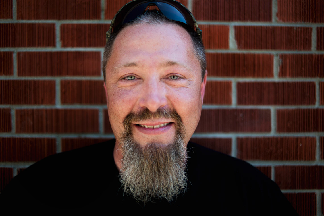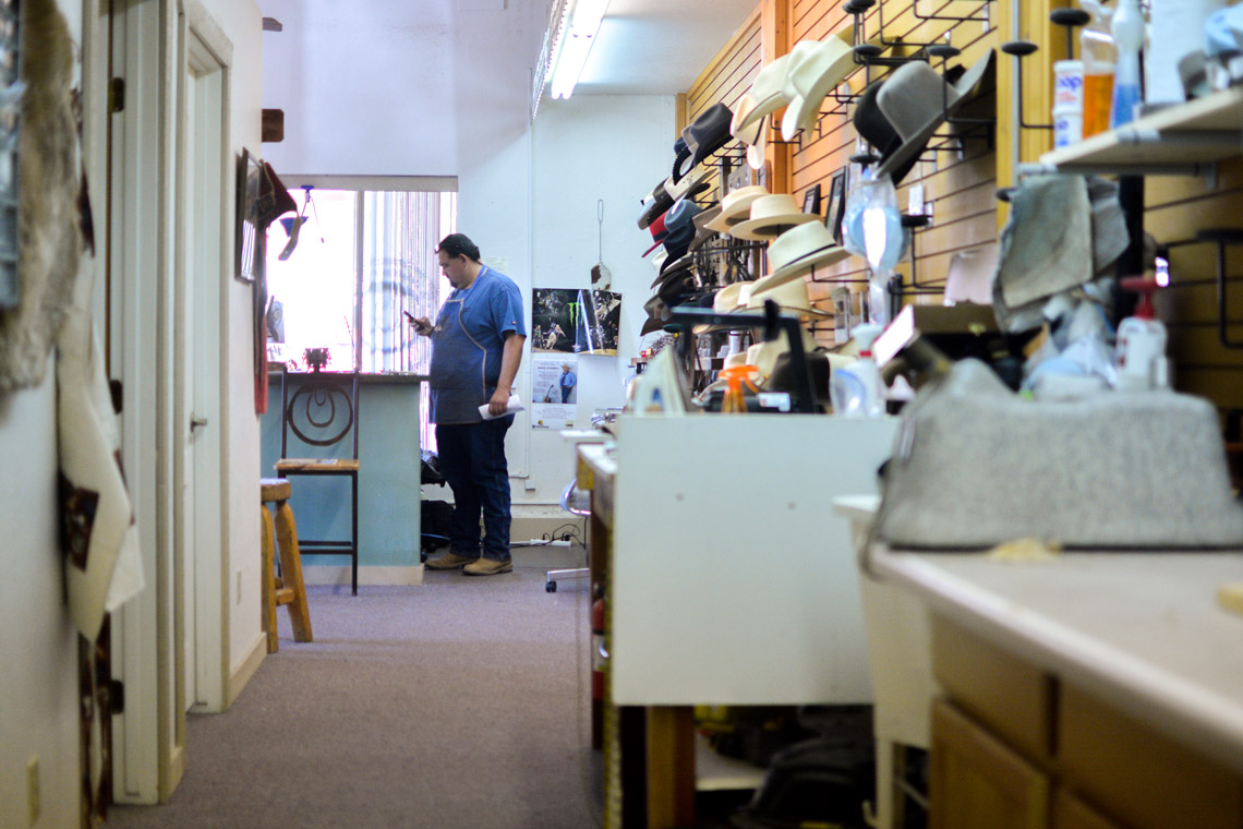 Bird relaxes after he finishes etching a holster for a customer. Photo by Jacob Byk/News21.