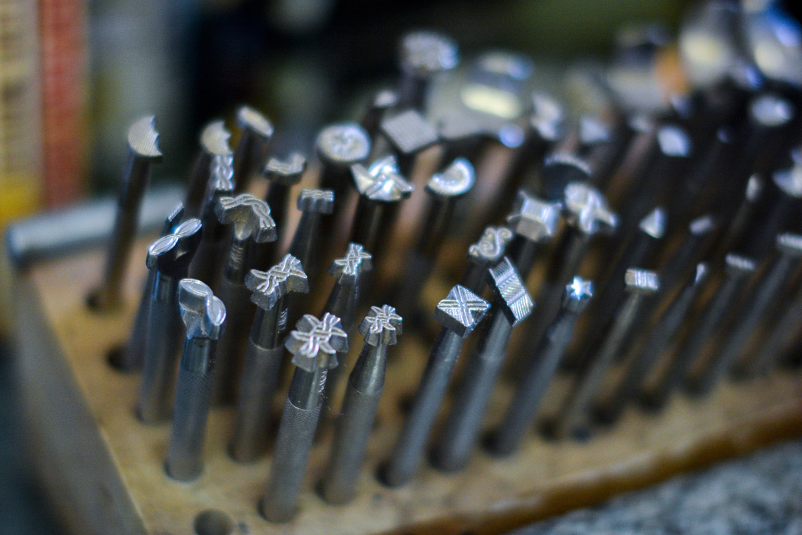 Imprinting leather can be expensive with patterns costing about $50. Bird uses them to give his work a “handmade” touch. Photo by Jacob Byk/News21.