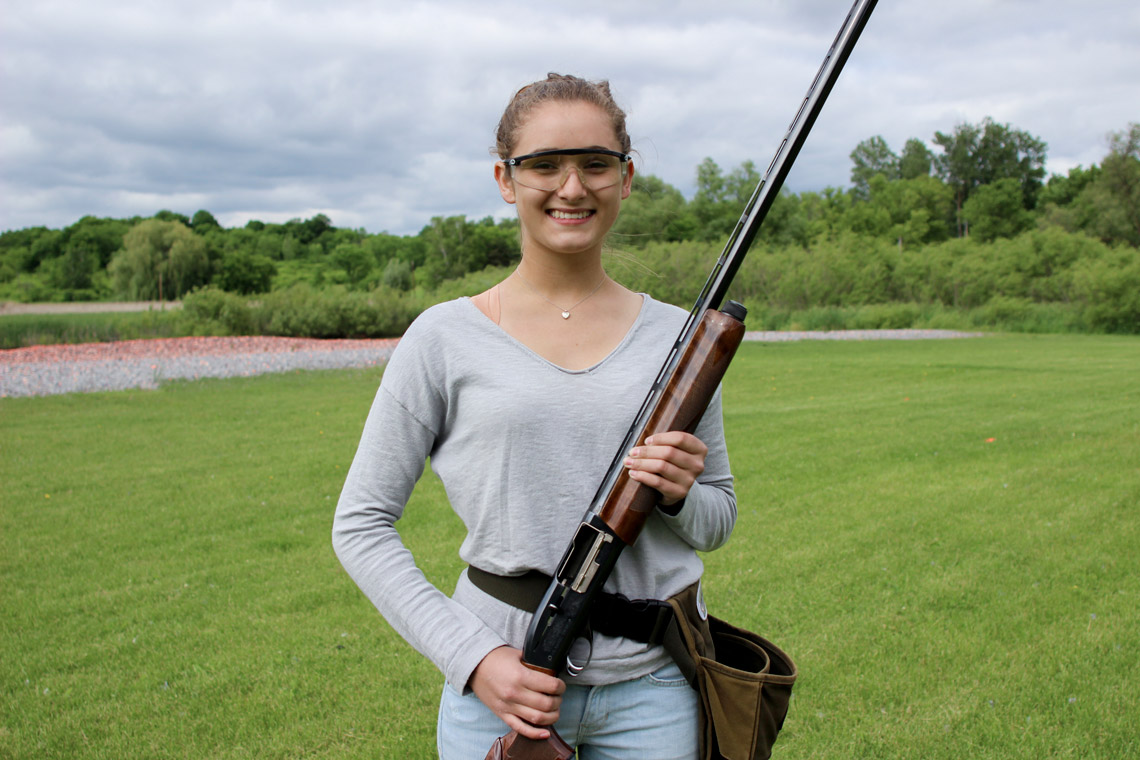 High school junior Kerri Mueller shows off her trapshooting gear after practice at the Park Sportsmens Club in Orono, Minn. Mueller, who placed in the top 100 high school shooters across the state, qualified for the first high school-sanctioned trapshooting tournament. Photo by Jessica Boehm/News21.