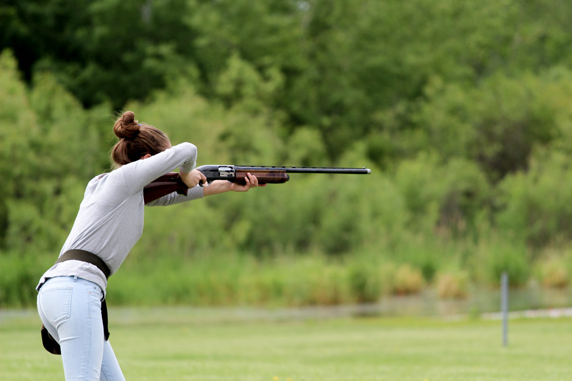 Mueller aims at a clay pigeon during practice. She started trapshooting in seventh grade with her dad as a way to practice for deer and pheasant hunting. Photo by Jessica Boehm/News21.