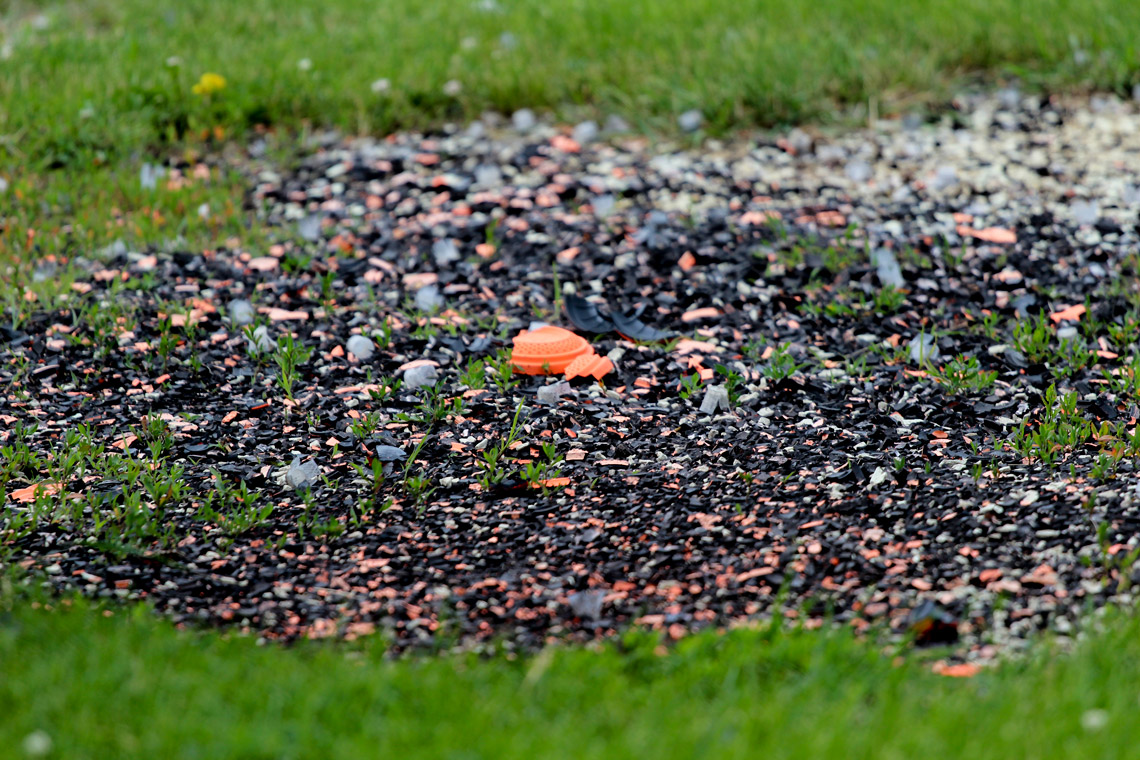 Crushed clay targets cover the ground at the Park Sportsmens Club. Mueller hit 97 out of 100 clay targets, a personal best, at the state championship in Alexandria, Minn. "I'm pretty proud of that," she said. Photo by Jessica Boehm/News21.