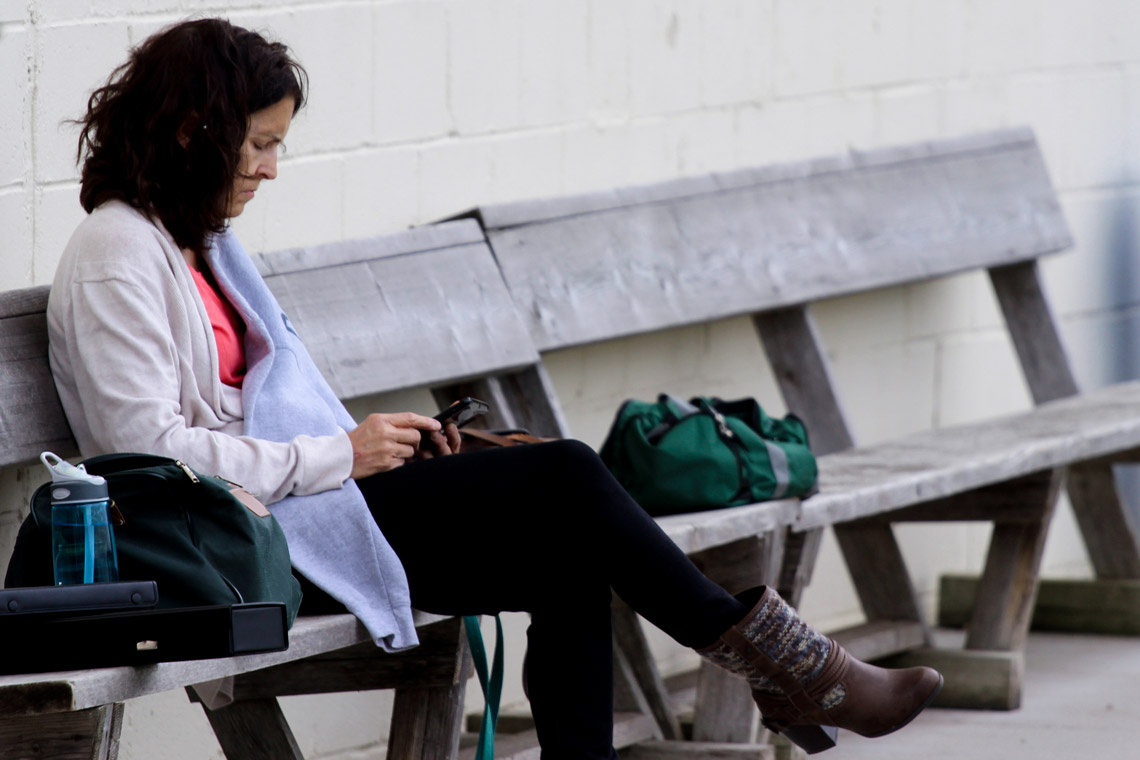 Peggy Mueller waits on a bench at the Park Sportsmens Club as her daughter, Kerri, practices for the state tournament with her trapshooting team. Growing up in a hunting family, Mueller said she was happy that her daughter wanted to join the trapshooting team. "It's just a great opportunity to get out and meet new people and learn a new sport," Peggy Mueller said. Photo by Jessica Boehm/News21.