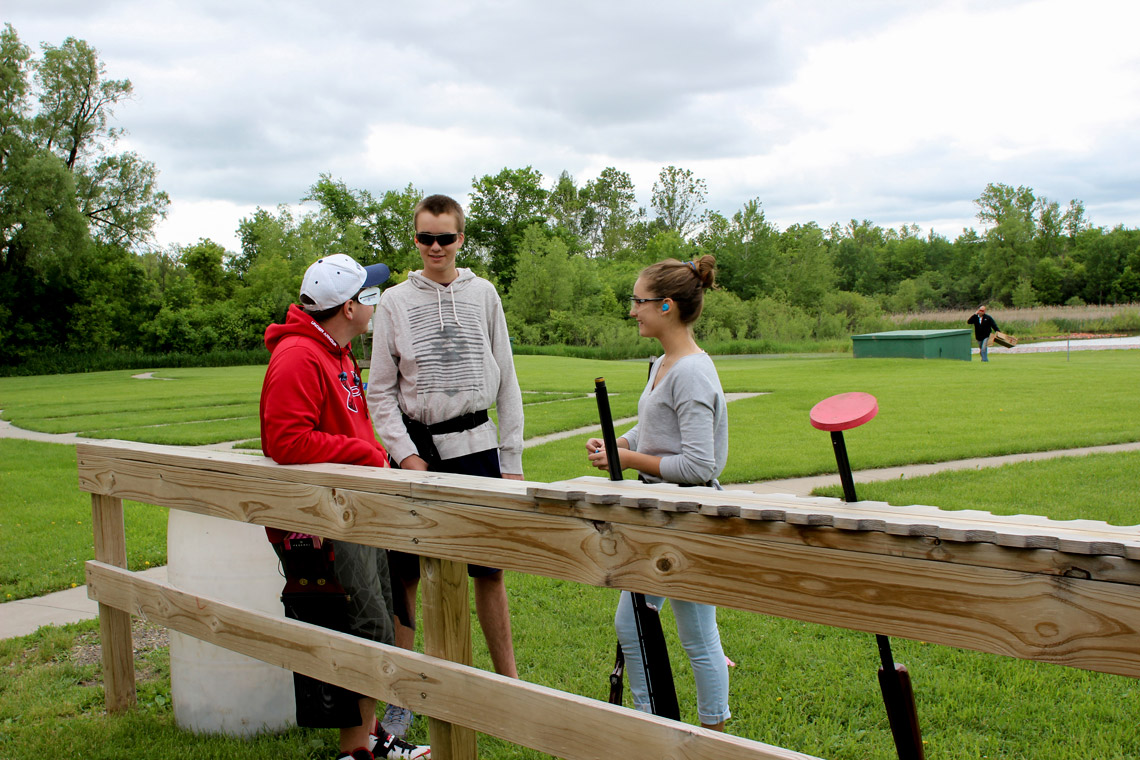 From left, Max Bunning, Andrew Rhodes and Mueller relax at the Park Sportsmens Club after practice with the trapshooting team. Mueller said people that question trapshooting as a high school sport likely do not have any experience with guns. "The kids that shoot are very mature, and they're not going to be playing with the guns," she said. Photo by Jessica Boehm/News21.