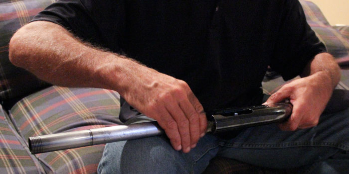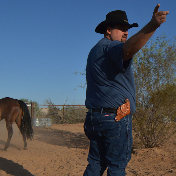 Lee Bird of Wickenburg, Arizona owns Twin Birds Saddlery. He open carries a Smith & Wesson .38-caliber Special revolver in a holster he made himself.